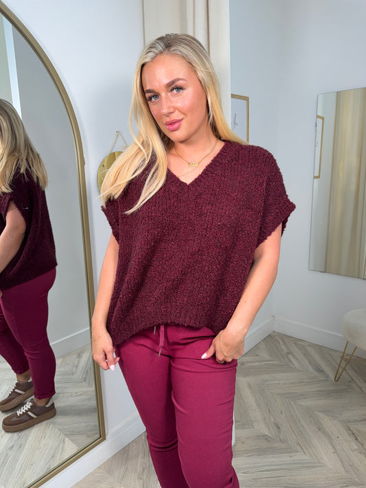 Ainslee Bobble Knit Sweater - BURGUNDY