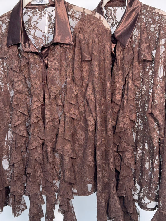 Sola Lace Ruffle Shirt - Dark Brown
