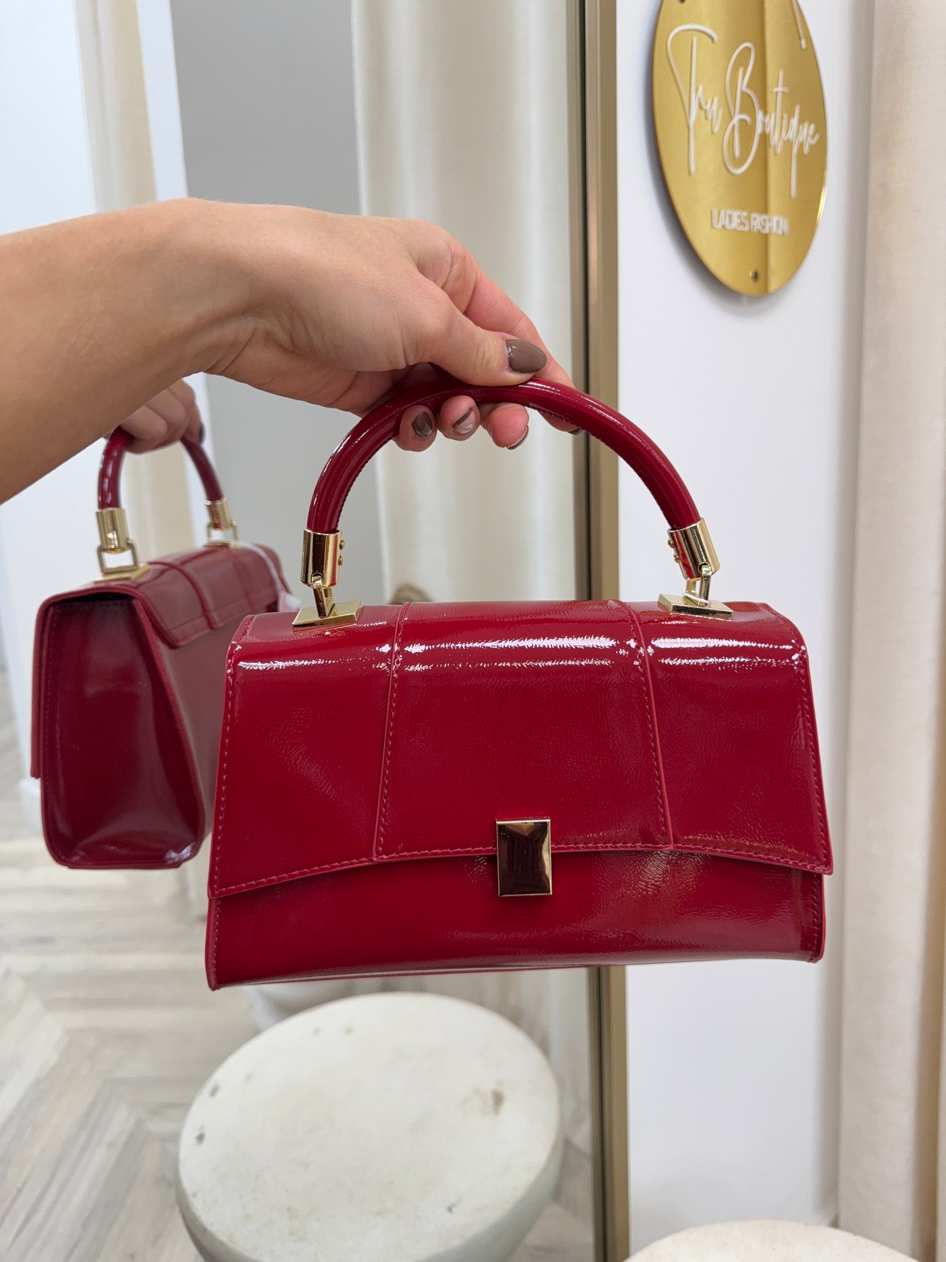 Make a statement with the Alouette Vinyl Handbag in striking red. This sleek, modern bag brings instant glamour to any evening look, whether you're heading to dinner or a night out on the town. The glossy vinyl finish catches the light beautifully, while the structured silhouette keeps everything organised in style. Compact enough to carry essentials, bold enough to turn heads. Your go-to accessory for those moments when you want to feel absolutely fabulous.