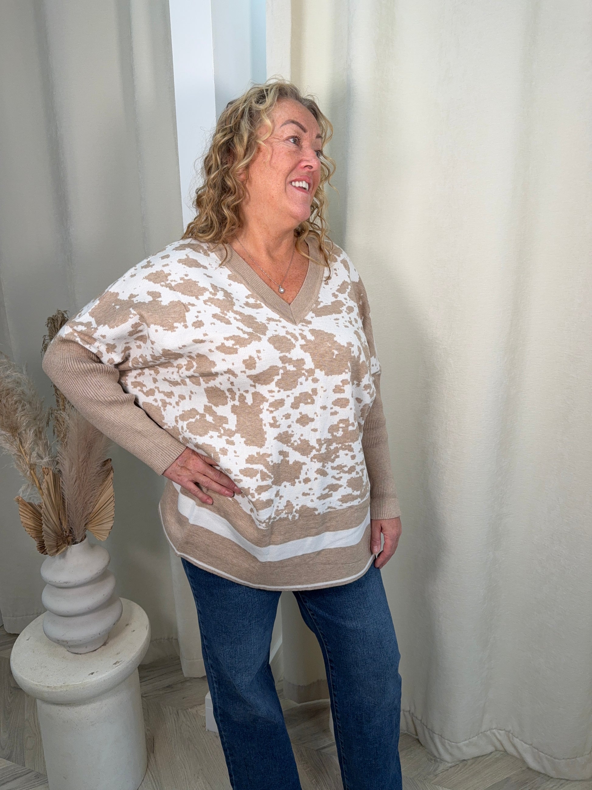 This cozy beige Clover Sweater is designed to fit beautifully from sizes up to 24, making comfort and style effortless. Its soft fabric and relaxed fit mean you can snuggle up in warmth while looking chic, no matter your shape. Perfect for layering or wearing solo, it adds a playful, casual vibe to any outfit.