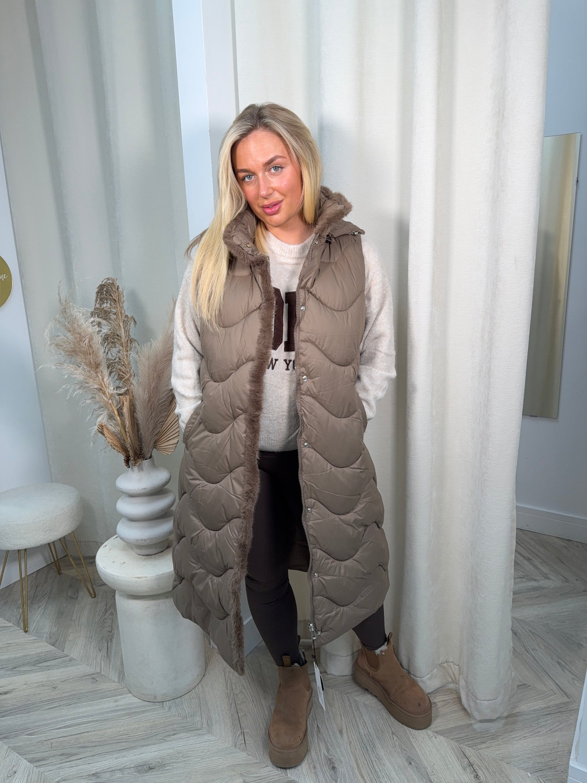 Stay cozy and chic in the Gladia Gillet–Cream, designed to fit up to a size 14 effortlessly. This versatile piece wraps you in warmth while adding a playful touch to any outfit. Perfect for layering on those crisp days, it keeps you snug without sacrificing style.