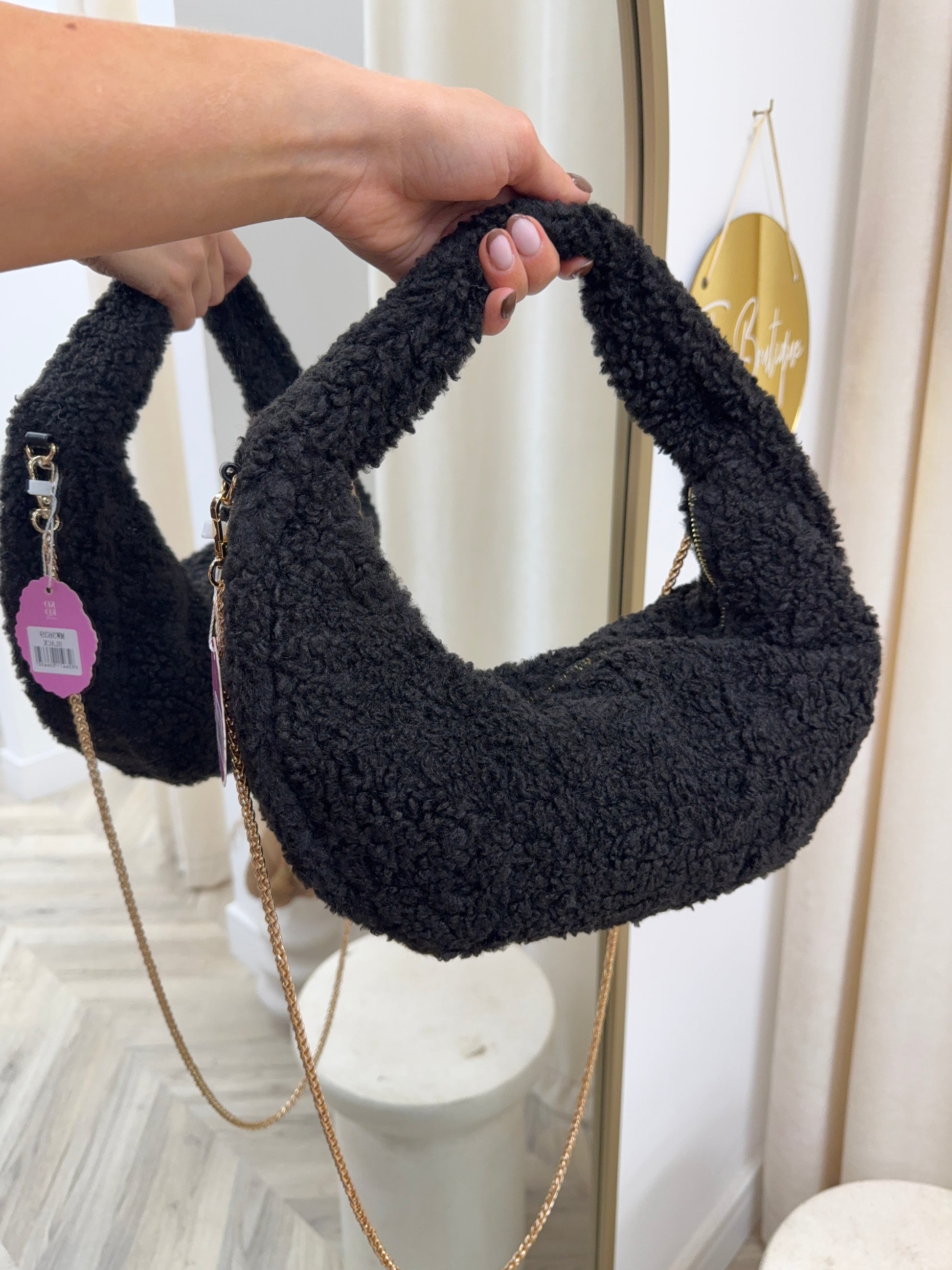 Cuddle up to luxury with the Isolde Teddy Handbag in cream. This irresistibly soft fur piece is your new go-to for effortless style, whether you're heading out for brunch or a night on the town. The detachable gold strap gives you versatility—wear it as a shoulder bag or clutch, depending on your mood. One size fits all your essentials, making it the perfect companion for any occasion.