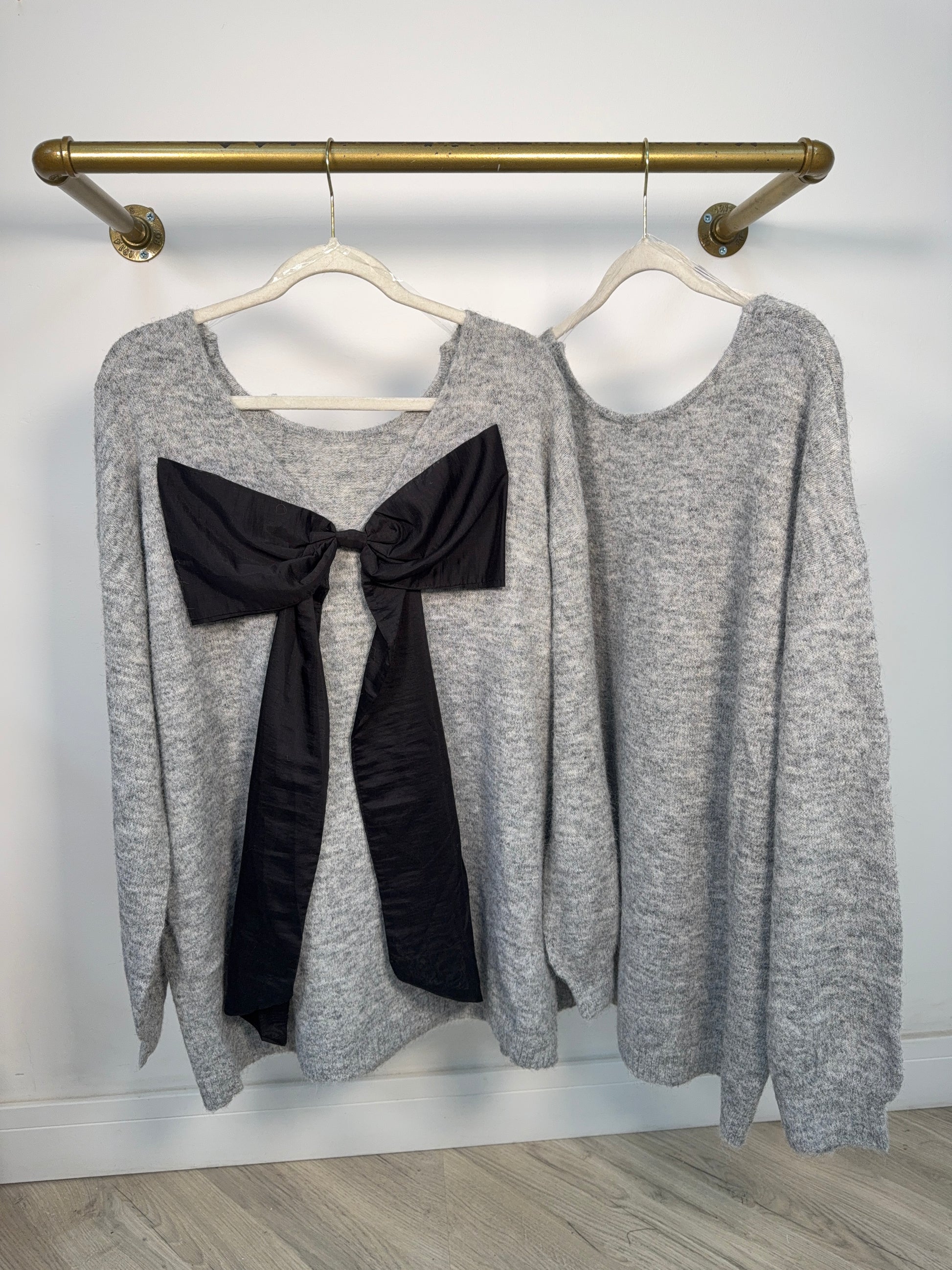 Elevate your festive wardrobe with this gorgeous grey bow sweater that's as versatile as it is charming. Rock the statement bow at the front for classic elegance, or flip it to the back for a cheeky twist. Perfect for holiday gatherings and seasonal celebrations, this longline beauty offers cosy comfort with serious style credentials. Available in two sizes: S/M (ages 6-12) and M/L (ages 12-16), it's the ultimate festive piece that'll have everyone asking where you got it!