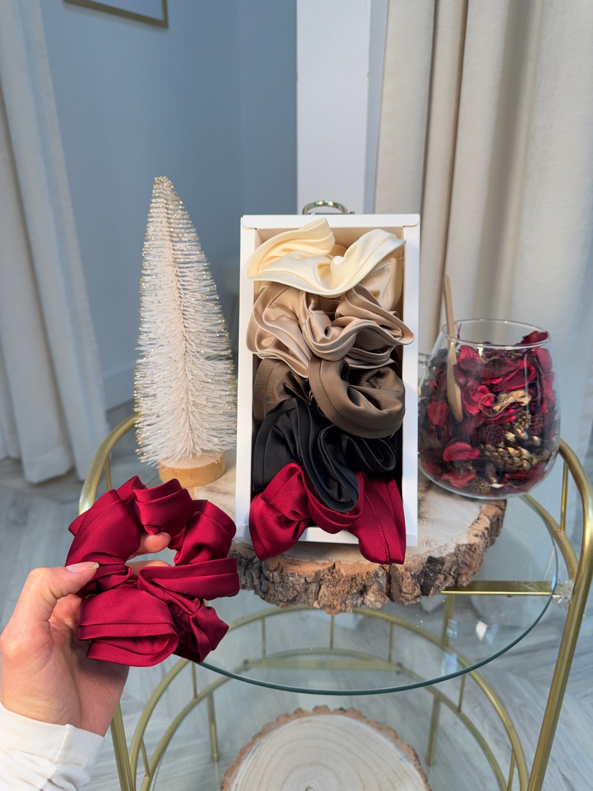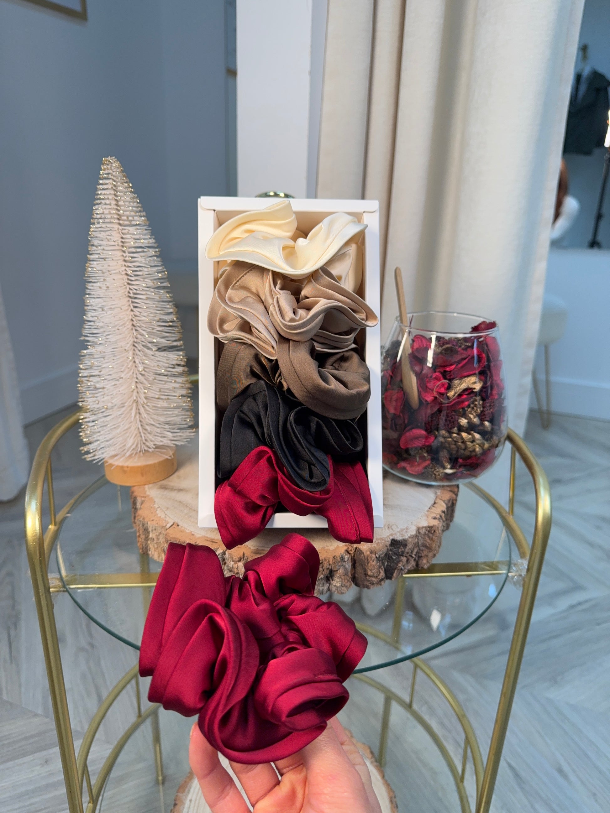 Get ready to elevate your hair game with The Ultimate Scrunchie Bundle! This Christmas special includes all the colors of our high-quality scrunchies. Say goodbye to bad hair days and hello to style and comfort. Get the perfect accessory for your locks today!